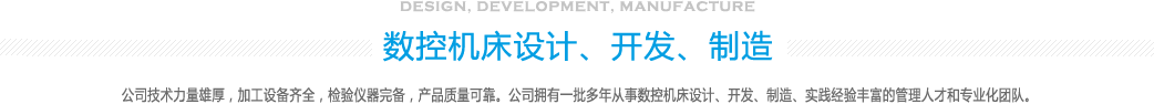 公司技術力量雄厚,加工設備齊全,檢驗儀器完備,產品質量可靠。公司擁有一批多年從事數控機床設計、開發、制造、實踐經驗豐富的管理人才和專業化團隊。